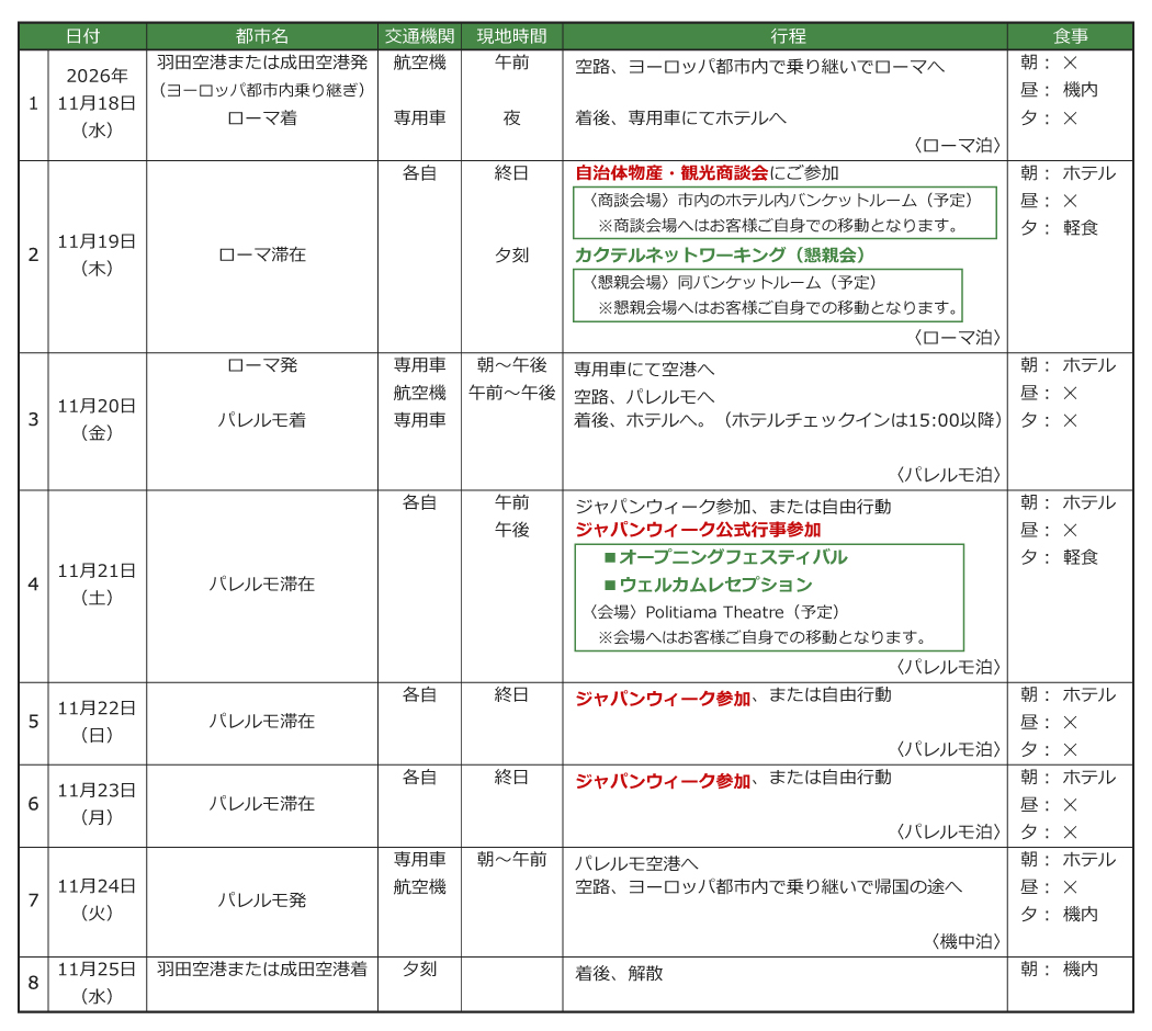 2026年は、訪日意欲が極めて高いイタリア・パレルモで開催。